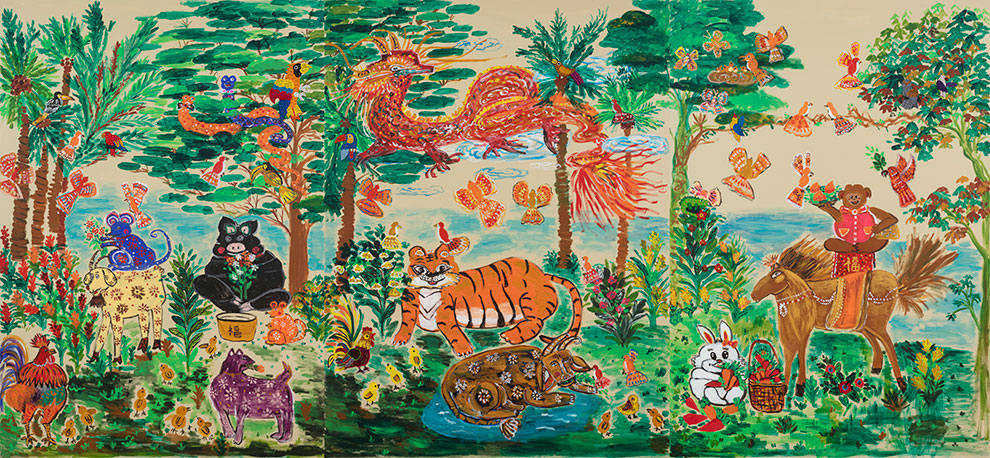 200x430cm,布面丙烯+巴拿馬印第安手繡,2022