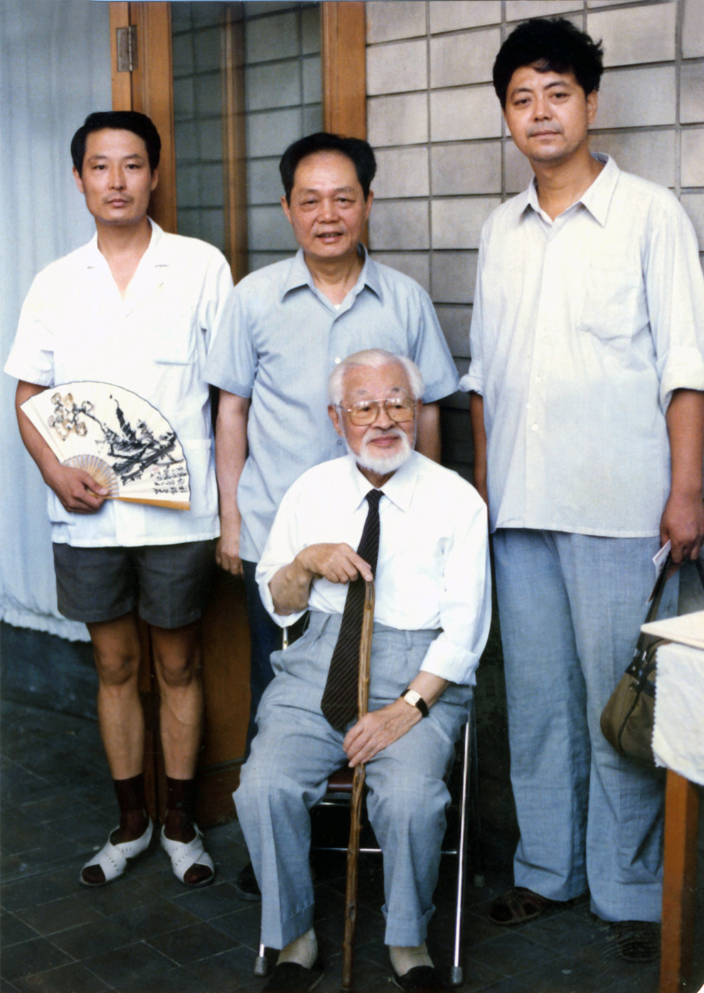 上世紀80年代,朱屺瞻(前坐者)、馮其庸(后中)、薛志耘(右一)