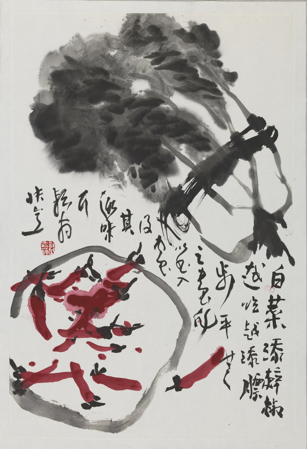 釋文:白菜添辣椒 越吃越添膘 步平芝之畫作 以書入畫 得其趣味耳 耘翁快意