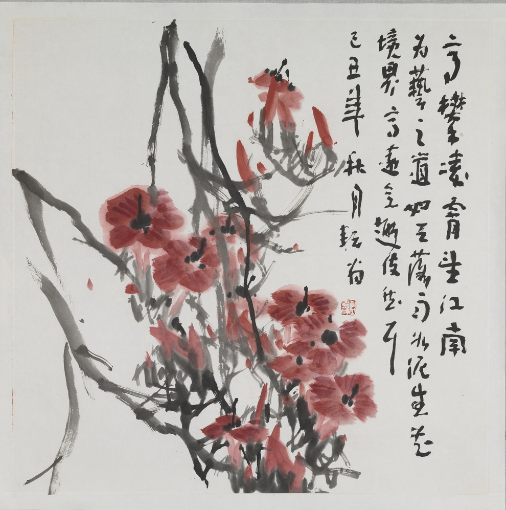 釋文:高攀凌霄望江南 為藝之道 如天落雨 如泥生花 境界高遠意趣使然耳 己丑年秋月 耘翁