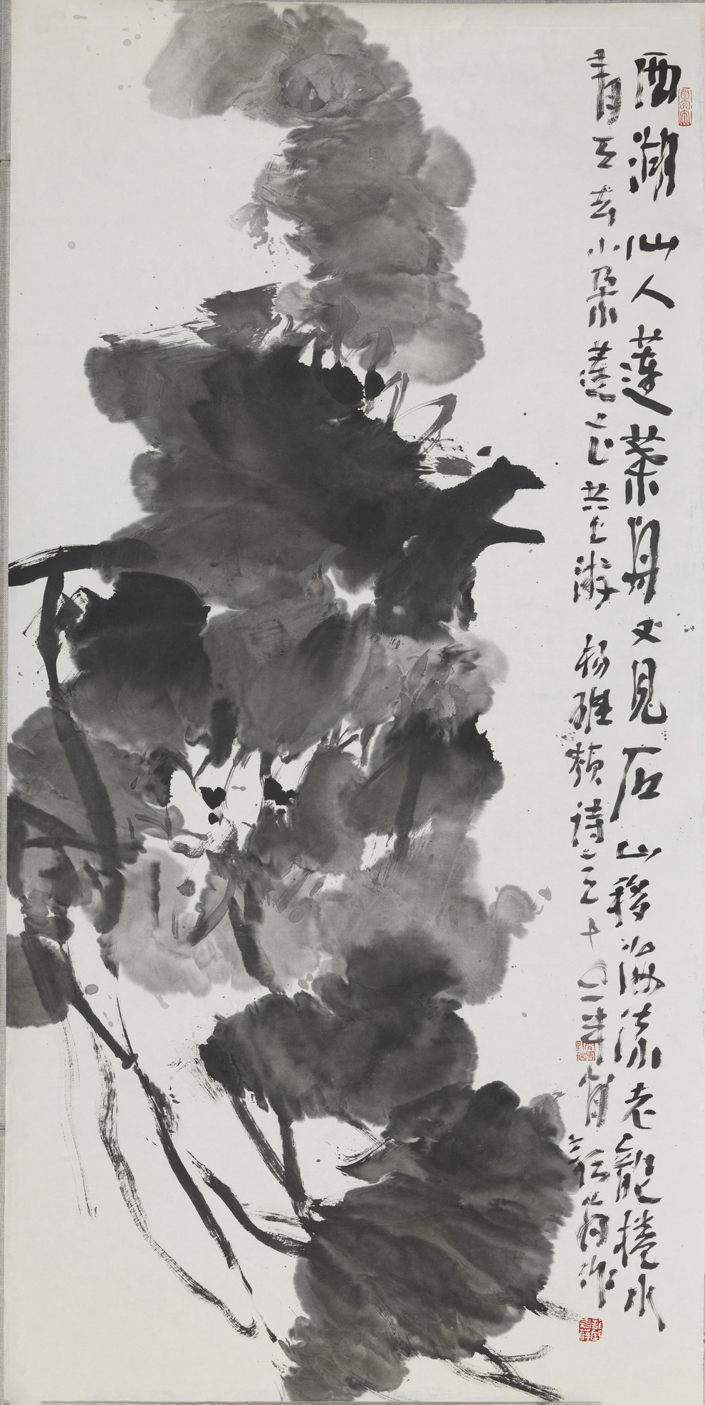 釋文:西湖仙人蓮葉舟 又見石山移海流 老龍卷水青天去 小朵蓮花共上游 楊維楨詩意 老半閑耘翁作