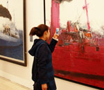 藝術家張新權陪同中國文聯副主席靳尚誼觀看展覽