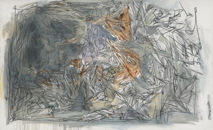 A:這張線描是我探索過程中的一次轉折,它是一個系列中的一張。當時想畫山,已經反復多次痛苦地探索過,從中也能慢慢體會到我當時的苦惱。美是一種進化,是一種精神,油畫最終也是一種精神。線更有力量、更直接、更直白,也更符合我的情感發展。當然也存在矛盾——色和線之間的矛盾。顏色是最自由的,在情感上起到很大作用,很難與線和諧,開始我也做不好,只能慢慢地實踐,不斷地突破自己。我很排斥畫主題畫,也和全景畫有關,從那以后我再也不畫主題畫了。