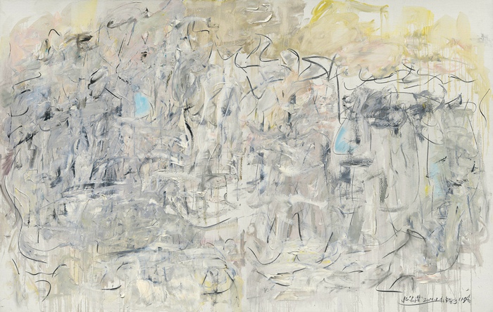 一個多小時的采訪中,趙大鈞先生思路清晰,侃侃而談,已經82歲的他雖然身材瘦小,但精神矍鑠,氣場十足,言談舉止中依然充滿著對藝術追求的沖動與激情。他說:“有記者問我,您現在年齡大了,還能畫這么大的畫嗎?我說只要感覺對了,我爬著那一筆也能放上去,那就是對的?!彪m已過耄耋之年,但他依然勤奮不止,不斷解脫束縛、不斷向內心的純粹與自由走去,或許這就是他藝術的奧秘。