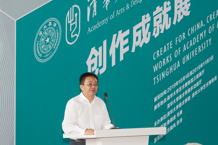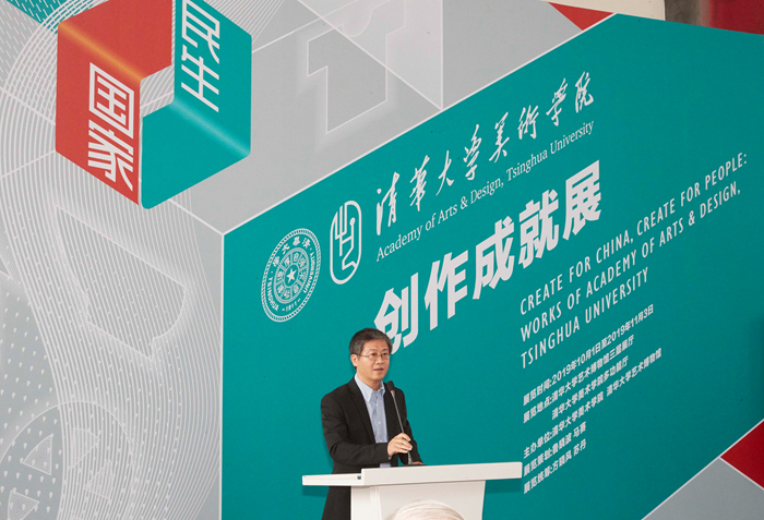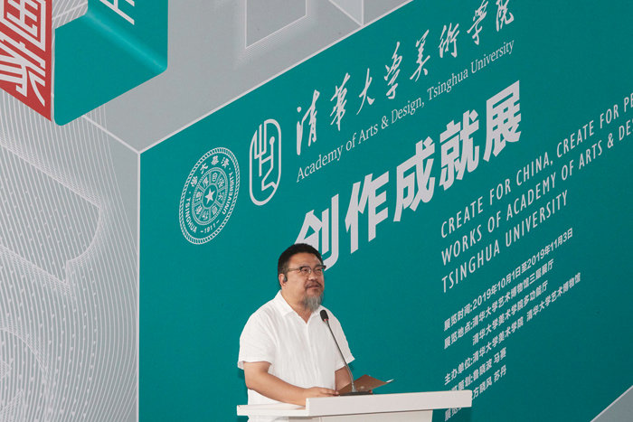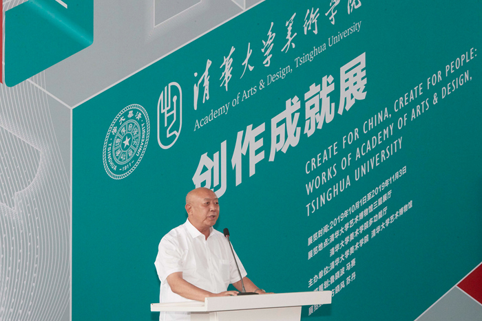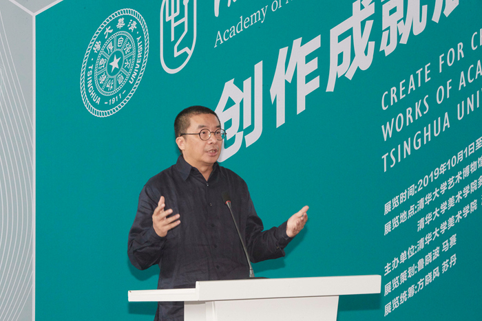 清華大學美術學院院長魯曉波在致辭中強調,要將視野投向未來,從大美術、大設計的角度展現新時代的價值追求,踐行清華大學美術學院的責任與擔當。魯曉波認為,在技術突破、社會轉型、全球化的競爭與合作態勢不斷加深的今天,藝術與設計及其所承載的文化自信、民族精神已成為國家發展與創新的發動機。