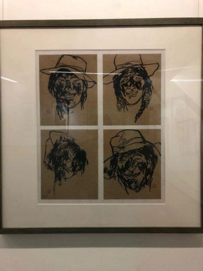 在展覽中,傅仲超的《藏民頭像寫生》(2019)、孫恩道的《妹娃兒要過河》(2019)等作品呈現出邊疆寫生在當下的發展面貌。其中《藏民頭像寫生》由四幅小張頭像速寫組成。畫家用水墨線條勾勒出所描繪藏民的帽子和臉部輪廓,又用干筆皴擦出部分頭發和臉部的陰影。畫家用筆迅速、簡潔,準確捕捉到了不同人物的外形特點以及具有個性的神態。速寫通常由鉛筆或炭筆繪制,而《藏民頭像寫生》展現出水墨作為速寫材料的特質。這包括水墨線條的柔和、流暢,以及干筆皴擦出的質感。