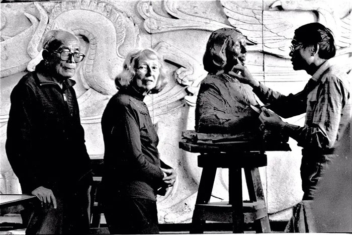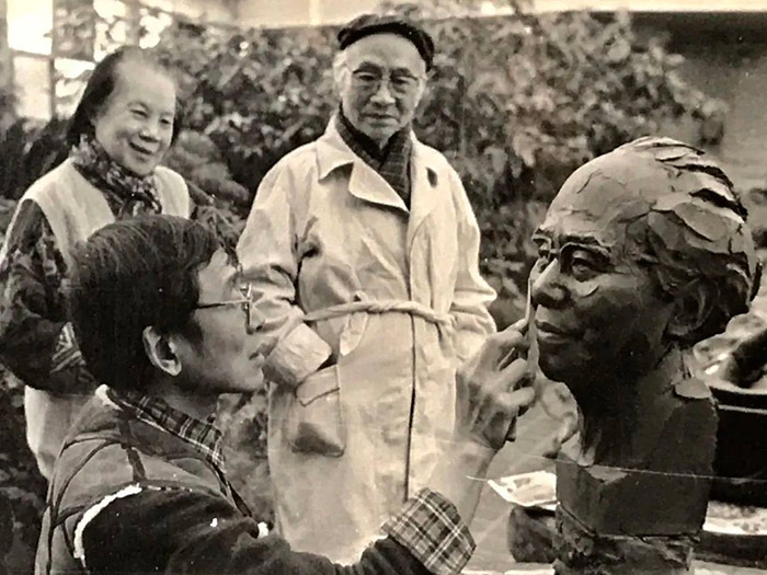 司徒兆光為吳作人先生塑像,圖為司徒兆光與吳作人、蕭淑芳夫婦合影(翁乃強先生拍攝)