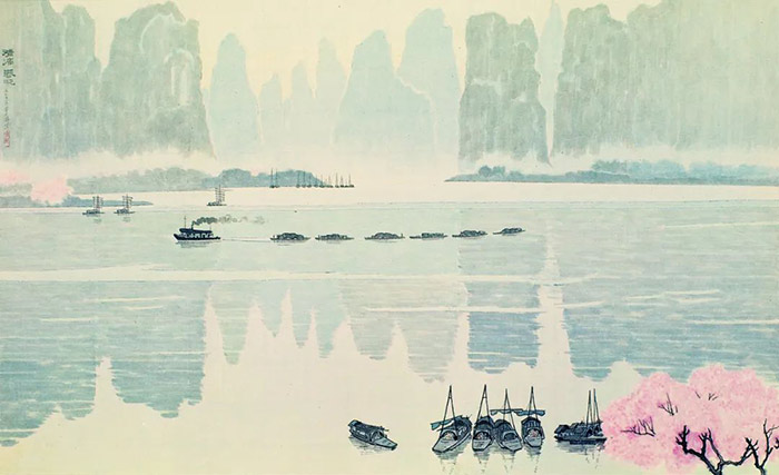 李斛,漓江春曉,紙本彩墨,114.5×190cm,1973年