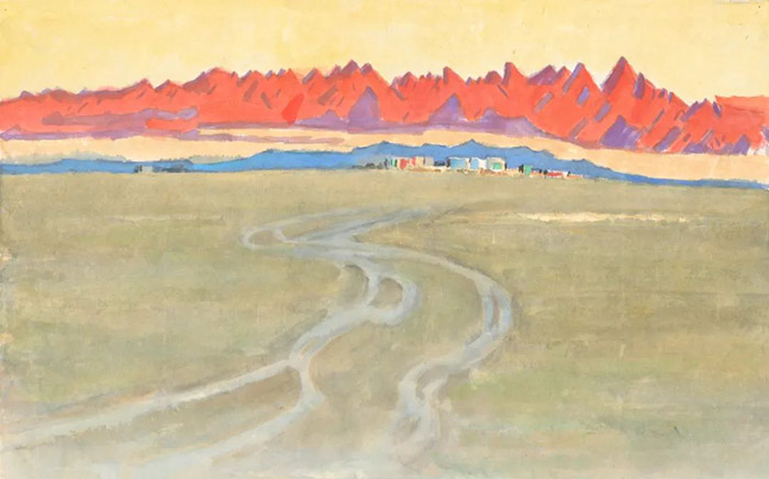 古元,草原風光,紙本水彩,24.5×32cm,1955年