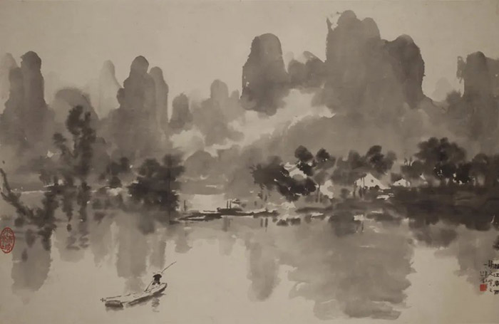 春雨漓江是個什么景致?作為北方人,只能腦補一下,那一定是很美的,否則宗其香在徐悲鴻作品《漓江春雨》之后50年再贊漓江,那一葉扁舟也繼往開來,同名作品應和恩師。