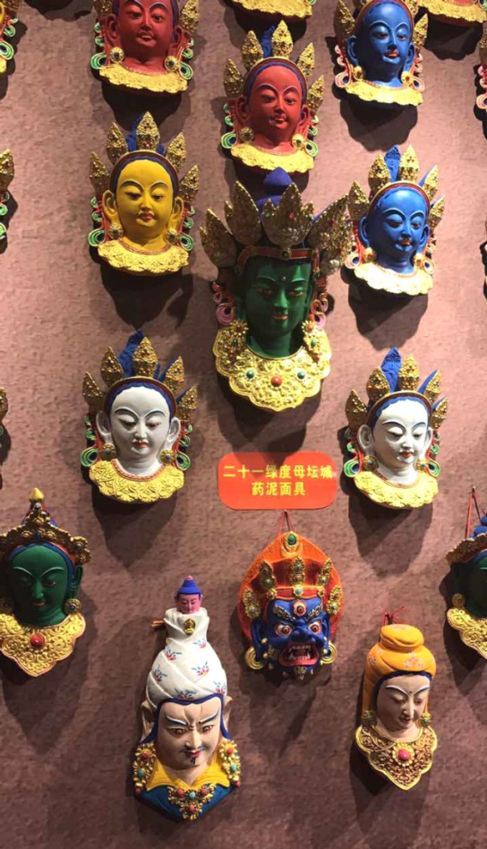 四龍降澤認為藥泥面具,“面”是至關重要的。他制作的面具里,除了寧靜的佛菩薩形象,呈現憤怒相的護法神。有微笑的,有怒目而不恐怖的的,還有憤怒中帶一點慈悲的,充分表現出他們的豐富性。