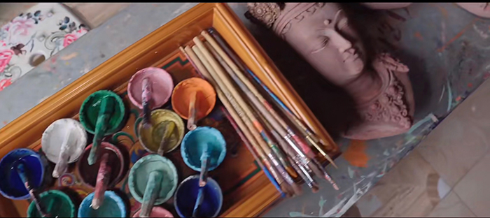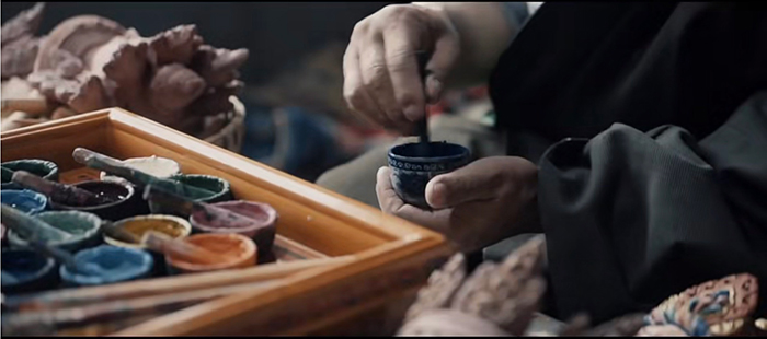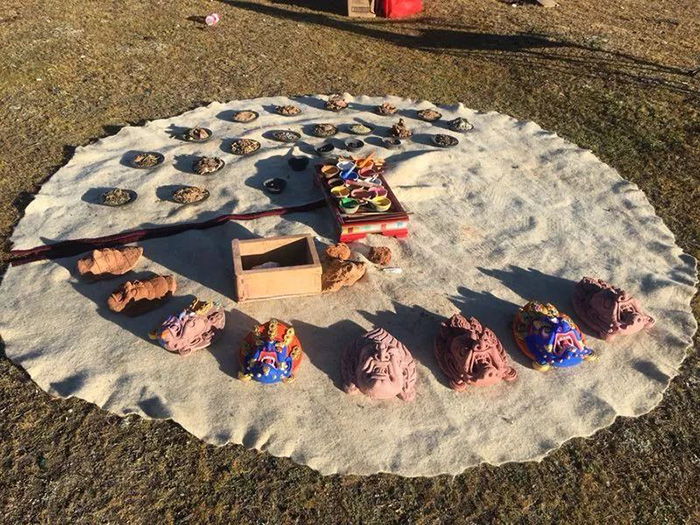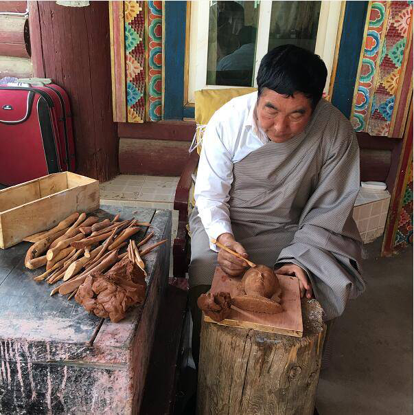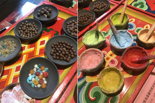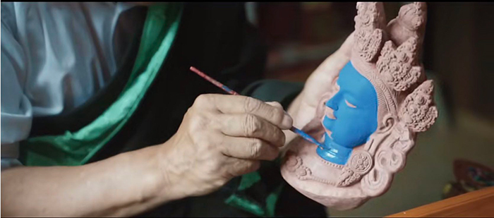 完成了原料調配的工作,還需經過雕刻、制陶、著色、發酵、晾制等十多道工序。祭拜過山神并裝入高僧開光的經文,一個完美的藏傳藥泥面具才算真正誕生。
