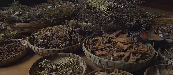 原材料的采集并非制作中最難的環節,面具中藏藥的調制才是考驗真功夫的時候。原料需要被反復敲打,直到與泥土融為一體。每種藥材必須按照特定的比例混合才可以達到完美的效果,配置比例稍有偏差,藥材放入順序錯誤,不僅會讓面具變質,甚至還會讓本來具有藥用價值的東西充滿劇毒。
