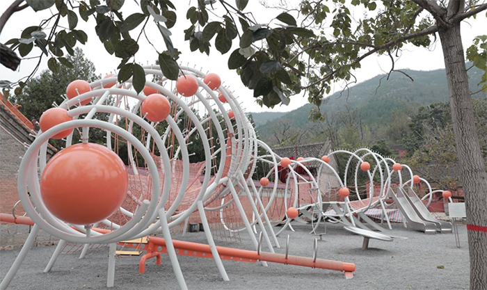 為孩子們設計的菜青蟲裝置,河南修武大南坡村,攝影:三金