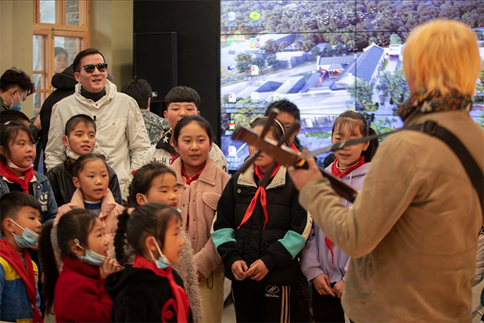 鄉土美育是鄉村建設的重要組成部分。2020-2021年,北京當代藝術基金會聯合廣州美術學院跨媒體藝術學院、左靖工作室,共同邀請合作機構和青年創作者,為孩子們帶來“大南坡四季美術課”、“修武家鄉美學讀本”等美育課程和項目?!袄L見家鄉——修武家鄉美學讀本”確立了四種在地的鄉土意象:春—云臺山、夏—絞胎瓷、秋—懷梆戲、冬—冰菊為課本的主線內容,涵蓋音樂、繪畫、感知力訓練、想象力訓練與電影課、街舞等多種的美學體驗與實踐。
