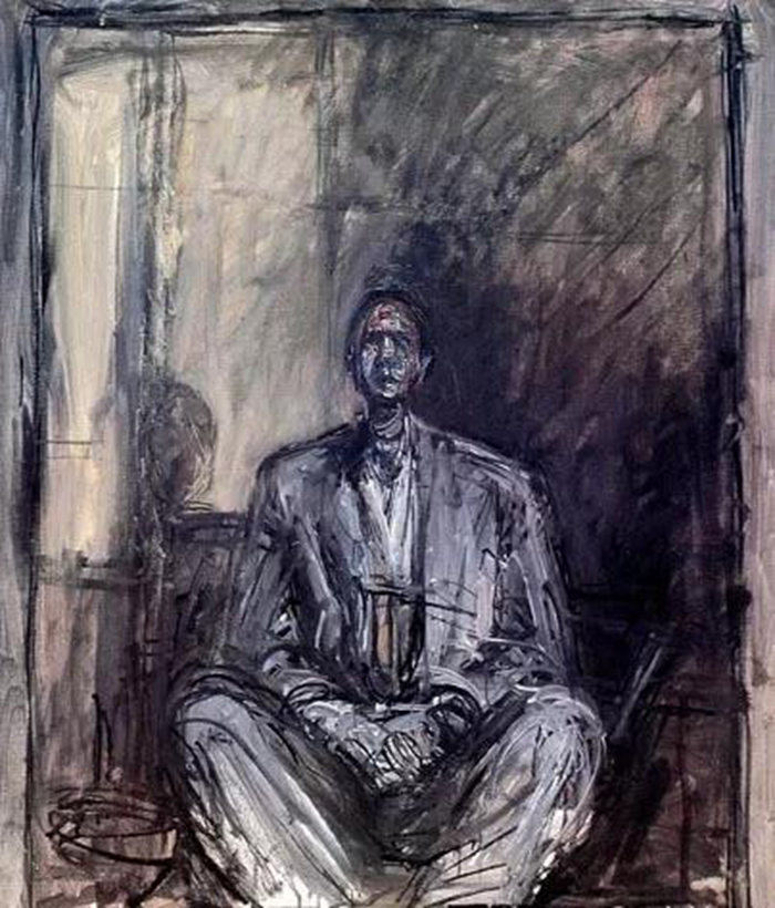 這些作品均為賈氏晚期的成熟之作,是他在二戰后更加地離群索居、蜷縮在工作室里的嘔心成果。須知賈科梅蒂不是憑空塑造或繪畫,而是面對真人來創作,給他做模特實為苦差事。他的工作室只有20多平米,堆滿作品和繪材,模特只能坐得離他很近,經受他長久的凝視。久經考驗的是他的弟弟和妻子,后來還有法國作家讓·熱內和日本哲學家矢內原伊作甘愿受此“折磨”,甚至薩特也加入了。在偉大的藝術家面前,模特們不僅化身為不朽的藝術品,熱內和薩特還成為賈氏最有力的藝術闡釋者。