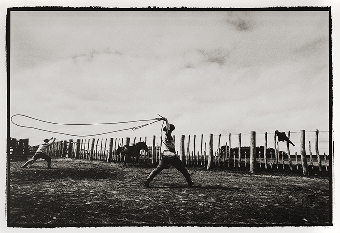 烏拉圭塞羅拉爾戈,冬季牧場,牧人正要套住小馬打烙印。 路易斯·法比尼 鈀鉑紙基 60x50cm 2006年 烏拉圭前哥倫布土著藝術博物館藏