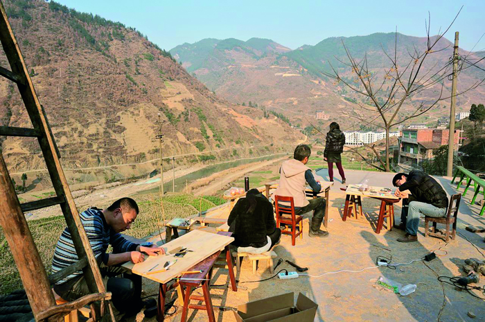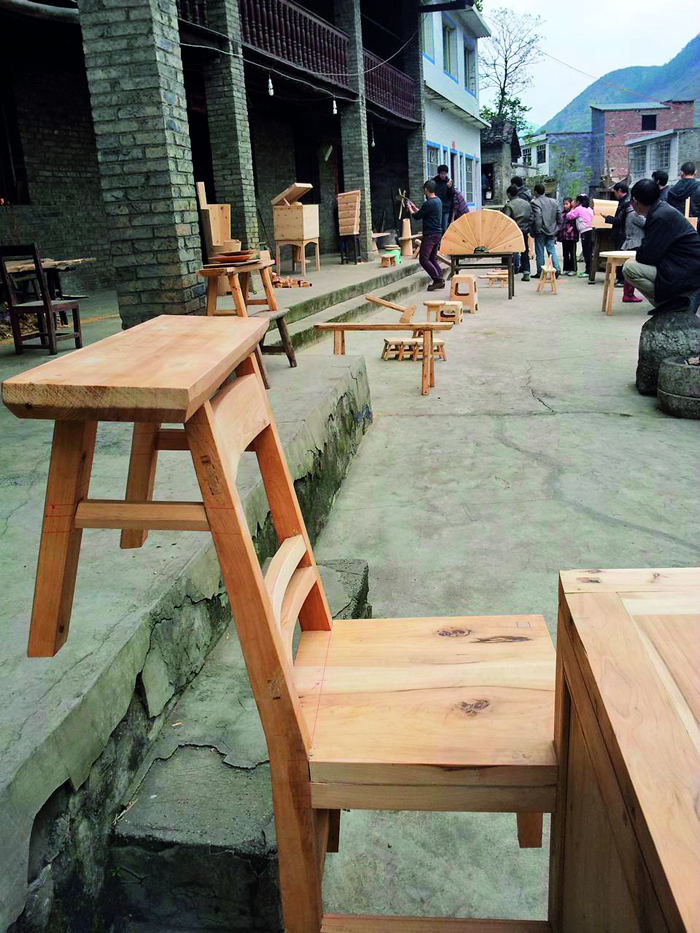 基于這些原因,我就想找一個和器物有關和工匠一起工作的狀態。我的研究生婁金的老家是貴州羊磴鎮,他們那兒有很多木匠,當然這也是計劃之外,我們本來計劃去大足尋找的。我們到了羊磴后,就和那里人聊天,感覺他們和手工有關系,感覺特別有價值,從那個時候,我在那個點上就被改變了,我們今天總想找到一個最典型意義的文化傳承和技藝,但我覺得所有的東西都沒那么典型。那個地方的木匠很多,但是手工活兒都很糙,并非是很精細的傳承技藝,但它可以滿足很自用的需要,我覺得這很有意思。為什么傳統技藝走到了某種程度,它就遮蔽了和日常之間的關系,日常生活使用的理解。我們從一些鄉村木工開始去實踐,在那里不斷地深入了解,一點點改變,一直持續下來,也沒想著去別的地方,從一個點上深下去就有足夠大的世界。