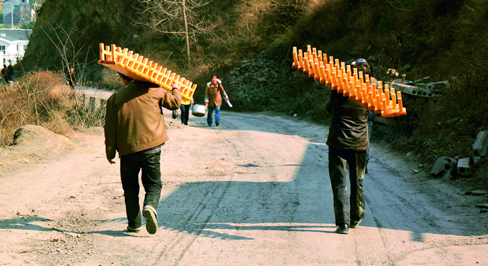 當時我們就憑著自己的直覺和藝術感受,在人與人之間的交往中去解決問題。我們這些城里來的藝術家和雕塑家請羊磴的幾個木匠來做家具。藝術家和木匠分成六組,大家也不知道做什么,就是有方向但沒有目標。木匠們習慣客戶給他柜子的樣子大小,然后按常規去做,而我們提出的要求就很復雜,做什么東西要一起商量,木匠們就不會了,雕塑家們也很痛苦,他們從來就是自己畫草圖來做,現在也不知道怎么進行,就像長期使用右手,突然讓你用左手來做事一樣別扭,我覺得這個過程是很好的,我們就天天吃飯喝酒聊天,藝術家和木匠兩個人慢慢熟悉了,一旦進入木匠的精神世界和故事,就會發現很多有意思的東西,最后六組人都成為了好朋友,也只有成為朋友才能往下實踐。所謂的規則也是突破口,從哪著手呢?就從木匠最擅長的一個家具入手,這既是他熟悉的也是他的選擇,這是起點,藝術家再進入,這個規則才真正可以展開了,從那兒開始我們才很自然的合作,相互激發著去做東西。我發現這是鄉村藝術核心的東西,如果不是藝術史或藝術世界里的藝術,藝術真正與生活無縫銜接的就是人與人之間的藝術,藝術無非就是賦予人與人關系的形狀和情感而已。