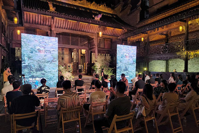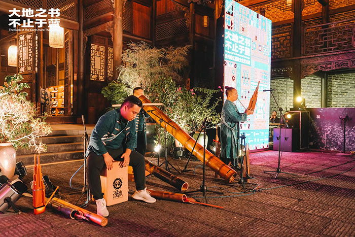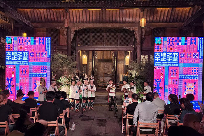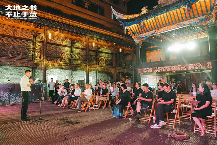 2022年8月18日晚,“大地之書,不止于藍——貴州榕江藍染文化藝術周”在當地具有200余年歷史的兩湖會館拉開帷幕。