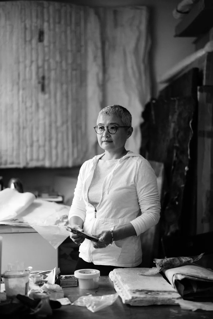 在早些年,林延對墨的探索也別具匠心。那段時期也被稱為“黑色時期”——她大量地用墨,墨把她逐漸引入到中國古代藝術的傳統里去。她也翻看研讀了大量中國藝術傳統繪畫理論,也看過各種水墨制造出的強大的生命力和藝術感染力,她覺得一定要重新把墨的精神找回來。所以后來就又有了“白”的宣紙系列。林延也曾在一次采訪中直言自己對宣紙的感受——“從古代沉淀出的美,含蓄、透氣,深沉有韌性”。