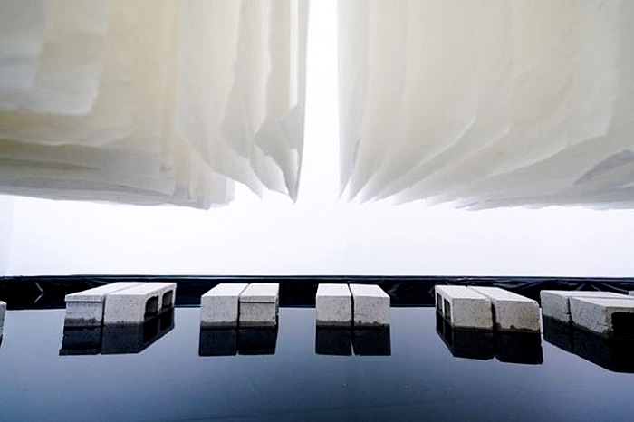 林延 天璣II -反映, 2017-2018 宣紙,磚,水和鏡子,場域特定裝置 6 x 5 x 3.4cm (圖片由上海獅語畫廊提供)