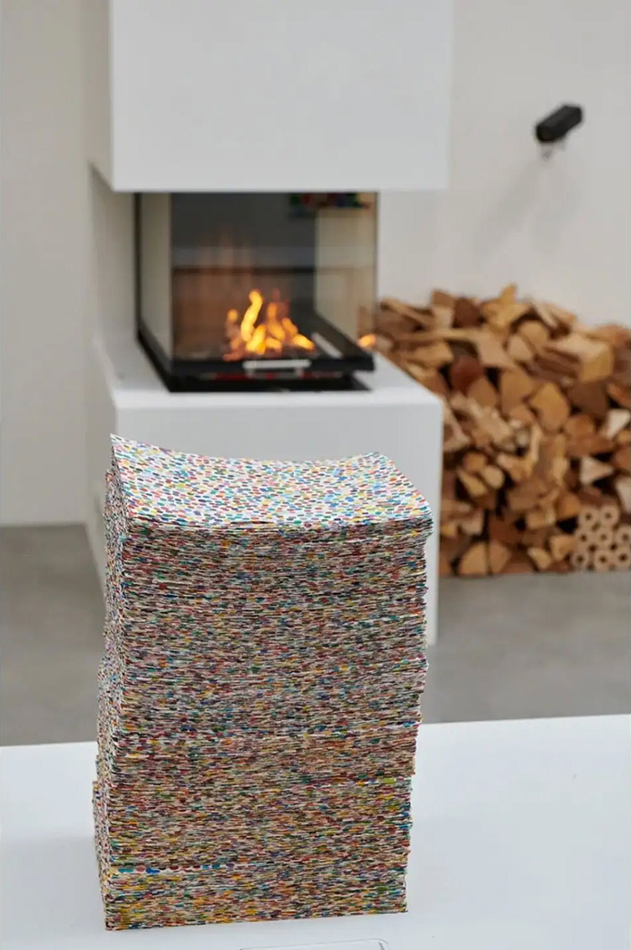 在當地時間10月11日,英國最有錢的藝術家達明安?赫斯特(Damien Hirst)開始燒毀自己的畫作,在眾多記者與直播鏡頭面前,藝術家將作品一張接一張的塞進燃燒的爐子里。