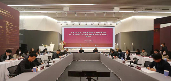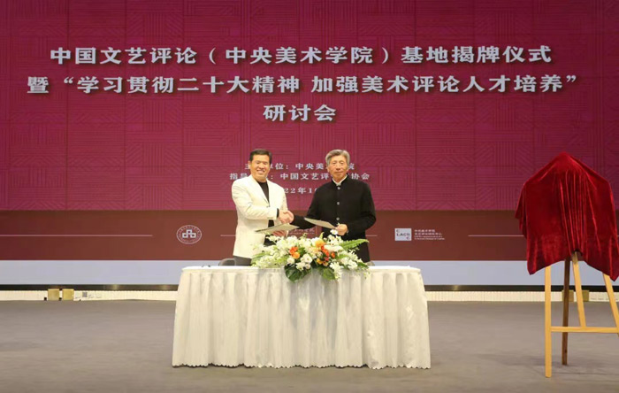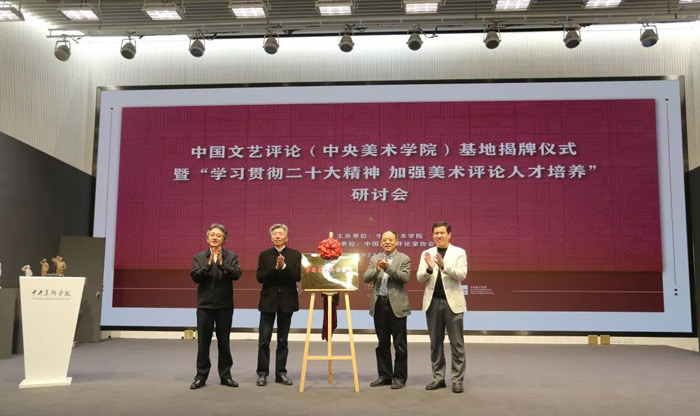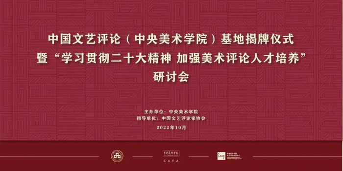2022年10月27日上午,中國文藝評論(中央美術學院)基地揭牌儀式暨“學習貫徹二十大精神加強美術評論人才培養”研討會在北京舉行。會議旨在深入學習黨的二十大精神,貫徹落實習近平總書記關于文藝工作的重要論述和文藝評論重要指示批示精神,特別是習近平總書記在中國文聯十一大、中國作協十大開幕式上的重要講話精神,落實中宣部等五部門聯合印發的《關于加強新時代文藝評論工作的指導意見》和中國文聯印發的《加強新時代文藝評論工作實施方案》,進一步推進文藝評論基地建設,打造高水平的文藝評論交流平臺,促進多元文化融合,共同推動文藝評論工作以及文藝評論人才培養在新時代的創新發展。