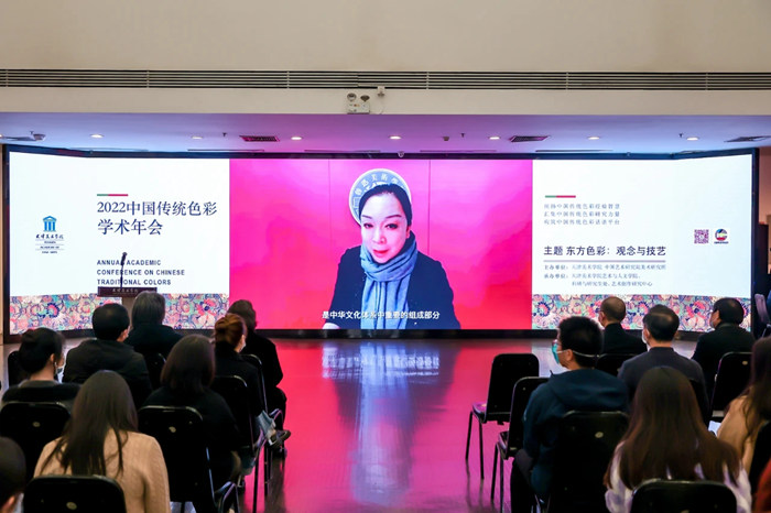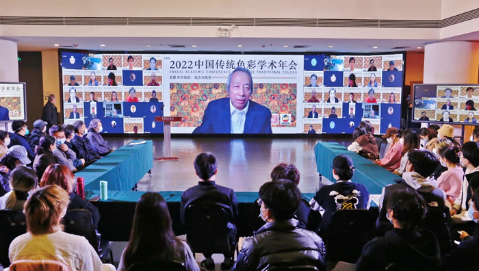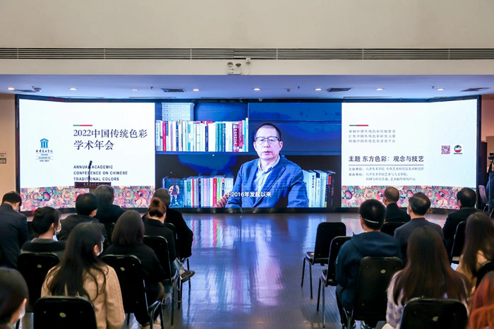 “2022中國傳統色彩學術年會”采取線上和線下結合的方式進行,津外專家通過視頻直播宣講論文并與現場互動。廣大師生聽眾通過線下參會和網絡觀看視頻直播的形式參加年會活動,并與授課專家交流互動。