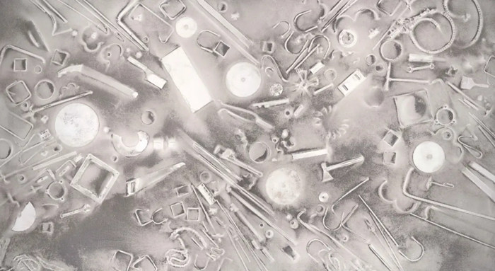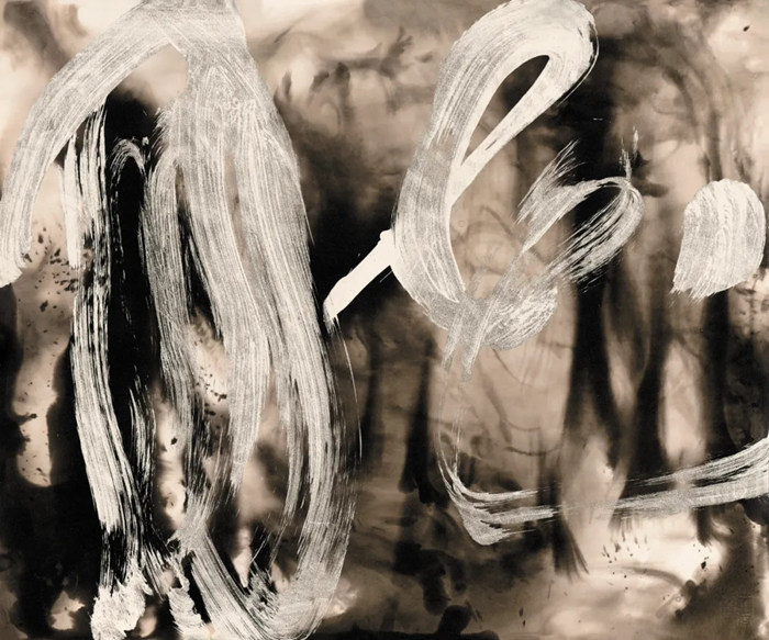 郎水龍,《塵埃之光A16 No.1》,畫布+塵埃,218×395cm,2016年。