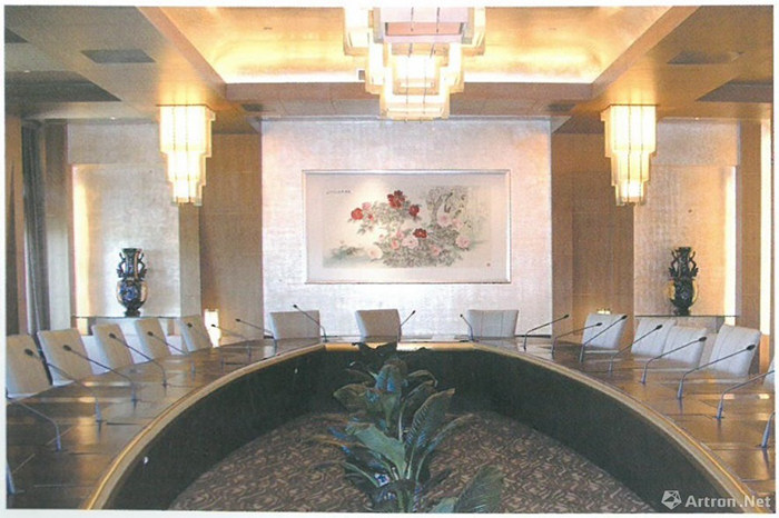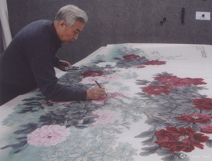 王慶升:我自己總結我自己的高峰期就是在60歲左右,精力好。尤其是68歲至70歲數年間,他給釣魚臺、中南海、政協創作了三幅大型的繪畫。其中,中南海讓我給畫牡丹,我當時我就想著這幾張畫有一個共同特點,都會掛在重要的國家會議場合,所以畫面一定要安靜,不能亂不能鬧,所以我就遵循著傳統宮廷繪畫的路子,畫面中沒有鳥、蝴蝶這些元素。