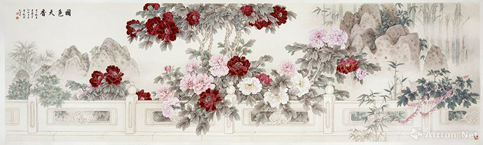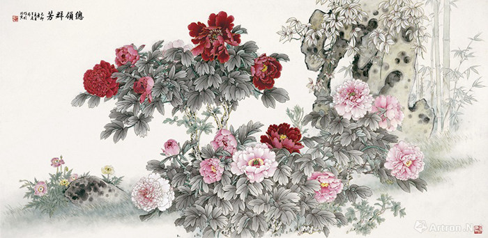 王慶升 《總領群芳》中國畫 120x245 cm 1999年