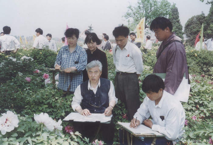 1994年,王慶升帶領北京畫院研修生在山東菏澤公園寫生牡丹