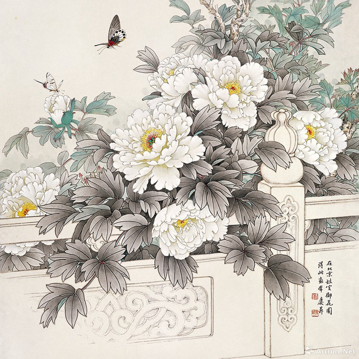 王慶升 《春風拂欄露華濃》中國畫 88x88cm 1978年