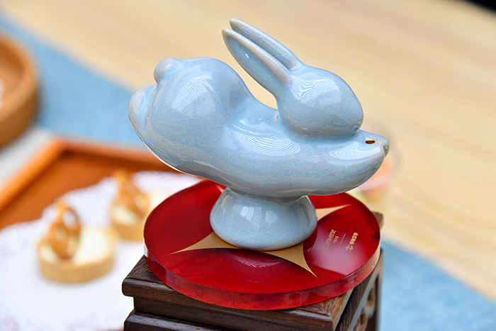 大賽產品設計單元三等獎獲獎作品《汝窯禧悅兔》,設計師賈佳