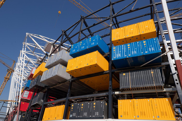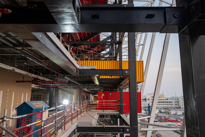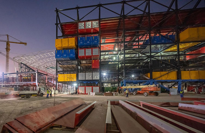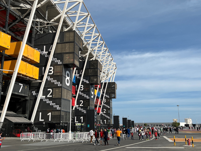Stadium 974在建造時采用了模塊化鋼結構,就是為了方便運輸和組裝、拆卸。這些集裝箱也不是擺設和噱頭,它們大部分都是捐贈的,最初就是用于把建筑材料運到工地的。在體育館結構當中,這些集裝箱用作場館的樓梯、售貨亭、浴室等作用來使用。
