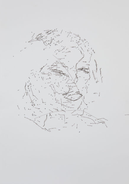 Ai-Da 的畫被輸入 AI 算法以創作抽象畫。攝影:尼基·約翰斯頓