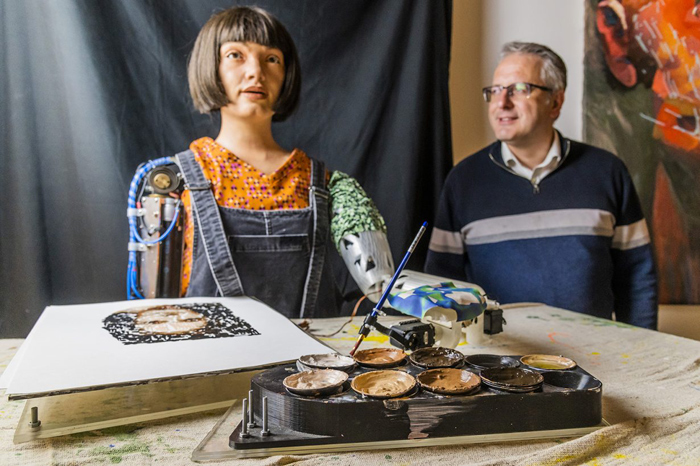 導言:當下,人工智能繪畫(AI)備受矚目,AI繪畫以使用者簡潔的輸入就能通過輸出大量富于創意的圖像作品,其產出的高效率和生成的奇異畫面令世人矚目,由此也引發了廣泛的討論,很多人都疑惑機器人或人工智能真的能像藝術家那樣畫畫嗎?Tom Whyman在artreview上刊登了一篇在“'像藝術家一樣'作畫是什么意思?”(What Does It Mean To Paint ‘Like an Artist’?)的文章,就這些問題發表了自己的觀點,在文章中他從世界上第一個人形繪畫機器人——艾達(Ai-Da)開始進行了剖析,艾達不僅具備一般的AI人工智能算法,而且在外形上擬人,更能模擬人眼觀察和手的繪畫動作,從而更接近完美。這樣的機器人繪畫的能力也非常強勁,但她和一般的AI繪畫真的能像藝術家那樣繪畫嗎?