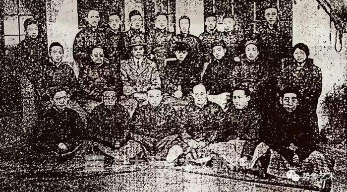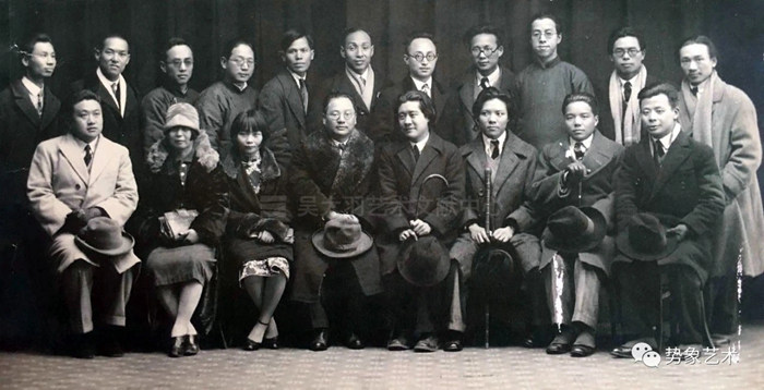 1930年,杭州國立藝專中留法歸國的教學人員在杭州合影。第一排:王靜遠(左二)、蔡威廉(左三)、孫福熙(左五)、林文錚(右三)、楊士達(右二);第二排:李樹化(左二)、程曼叔(右五)、吳大羽(右二)、林風眠(右一)