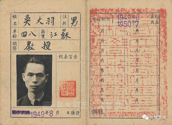 吳大羽于1929年、1930年接連迎來女兒吳崇力、兒子壽崇寧的出生?!傲Α迸c“寧”是吳大羽的藝術主張,也應用到兒女的名字上。他深愛自己的夫人,特意讓兒子跟母親姓。1930年國立藝術院易名國立藝術??茖W校,簡稱國立杭州藝專,學制改為6年(預科3年、正科3年)。國立杭州藝專的藝術運動社、藝術刊物《阿波羅》《亞當娜》的學術活動頻繁。吳大羽繼續不停地推出新作,1931年的《民族之光》、1932年的《女孩坐像》、1934年的大幅作品《汲水》(又名《井》)據說有5米高、4米寬。1935年作大幅油畫《凱旋圖》(又名《岳飛》)、1936年作《孫中山演講圖》、1937年作《國土不容侵犯》(又名《血手》)。一批一批有才華的學生走進杭州藝專,他們沖著現代藝術而來,繪畫系主任吳大羽的才華和教學影響了他們,胡一川、沈福文、胡善馀、祝大年、董希文、王式廓、丁天缺、朱德群、閔希文、涂克、羅工柳、趙無極、吳冠中等走進國立杭州藝專,列身于林風眠和吳大羽門墻。據吳冠中記述:“林風眠是校長,須掌舵,忙于校務,直接授課不多,西畫教授主要有蔡威廉、方干民、李超士、法國畫家克羅多等,而威望最高的則是吳大羽,他是杭州藝專的旗幟。杭州藝專則是介紹西方現代藝術的旗幟,在現代中國美術史上作出了不可磨滅的功績。吳大羽威望的建立基于兩方面,一是他作品中強烈的個性及色彩之絢麗,二是他講課的魅力?!保▍枪谥小秴谴笥稹贿z忘被發現的星》,1996年)