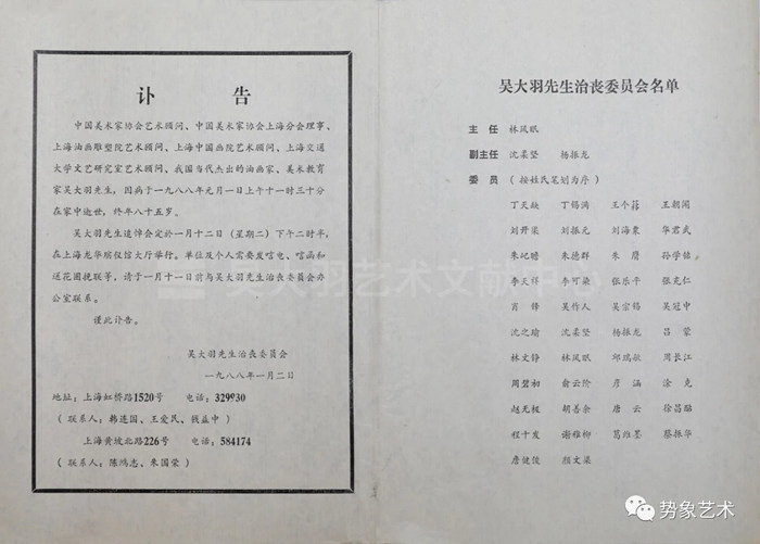 上海美協成立了以林風眠為主任,沈柔堅、楊振龍為副主任的治喪委員會。
