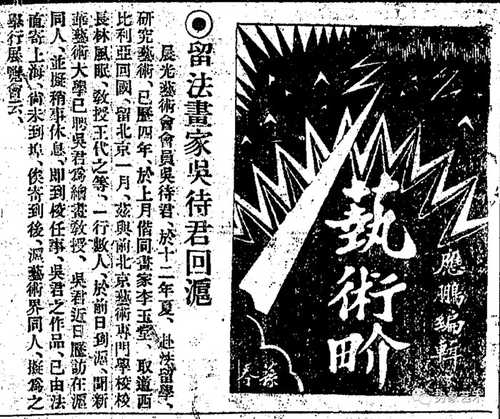《留法畫家吳待君回滬》,《申報》本埠增刊1927年10月12日