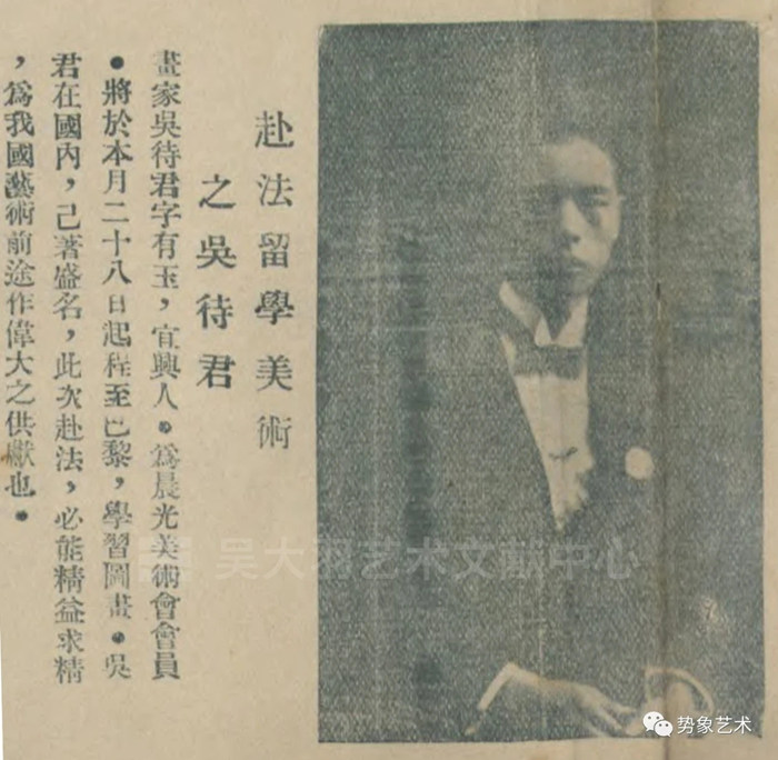 《赴法留學美術之吳待君》,《時代圖畫周刊》1923年9月24日