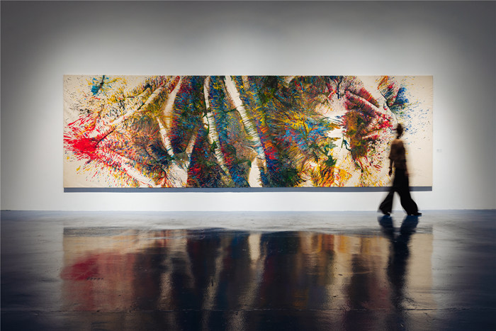 嶋本昭三 《無題 SHIM-128》 混合媒材、玻璃、合成樹脂于畫布 220×722cm 1990年代