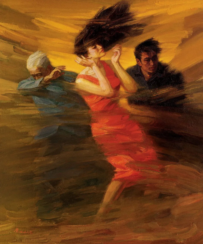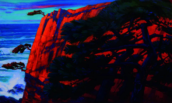 詹建俊《聽濤——紅霞》 布面油畫 180cmx300cm 2013年