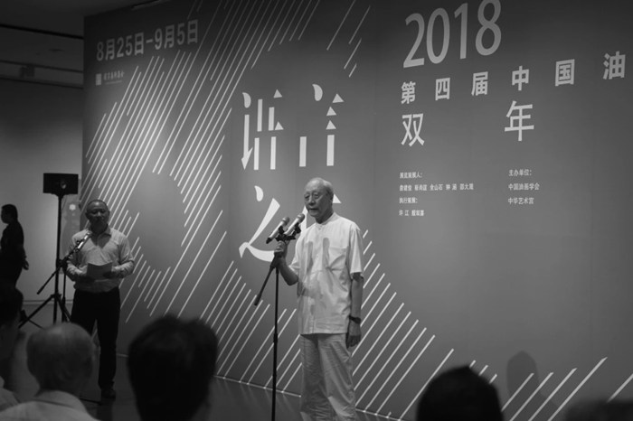 2018年,詹先生在“語言之在—第四屆中國油畫雙年展”開幕式上