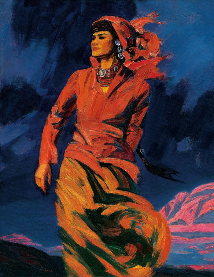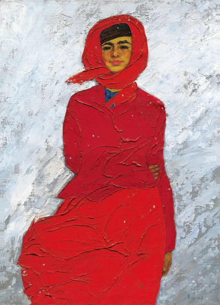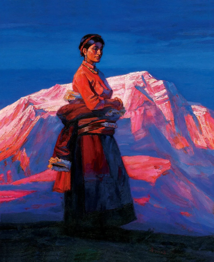 詹建俊《飄動的紅霞》布面油畫 117cmx91cm 1991年