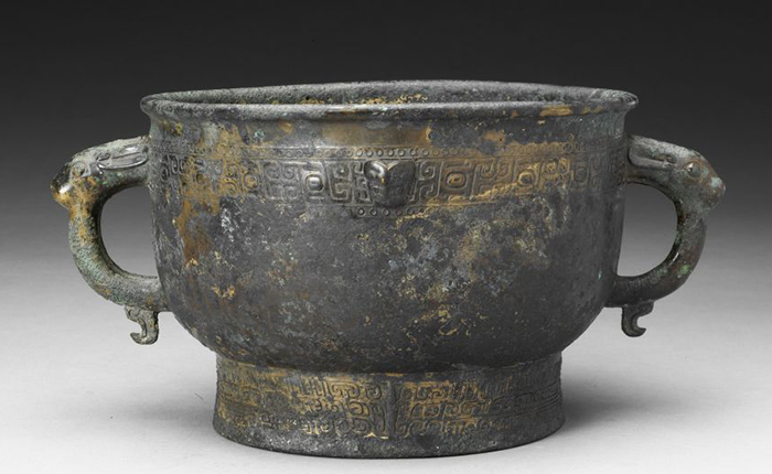 青銅器上的兔形也作為器物的雙耳出現,如西周的戈己雙兔耳簋,就在簋體的腹部兩側有兔首雙耳。兔首向外,雙眼圓睜,兔耳貼合在器物的雙耳之上。在商代開始簋就是青銅器中的重要禮器,天子以九鼎八簋祭祀。在這件青銅簋底部有“戈己”二字銘文,代表著這一雙兔耳簋是“戈”族“己”日祭器。