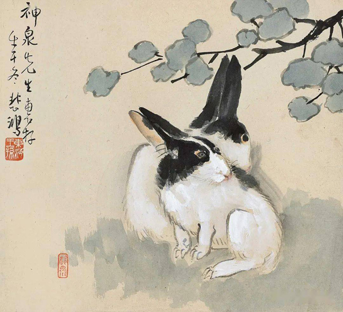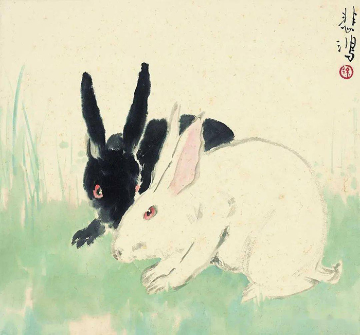 “雄兔腳撲朔,雌兔眼迷離;雙兔傍地走,安能辨我是雄雌?”想必這首《木蘭詩》大家都再熟悉不過了。徐悲鴻筆下的這兩組雙兔體塊造型精準,神態生動,他將西方透視科學與東方意蘊完美融合,成為中西結合的典范。