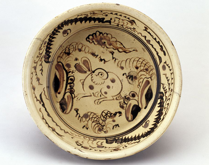 彭城窯白地黑花兔紋盆 明 故宮博物院藏
